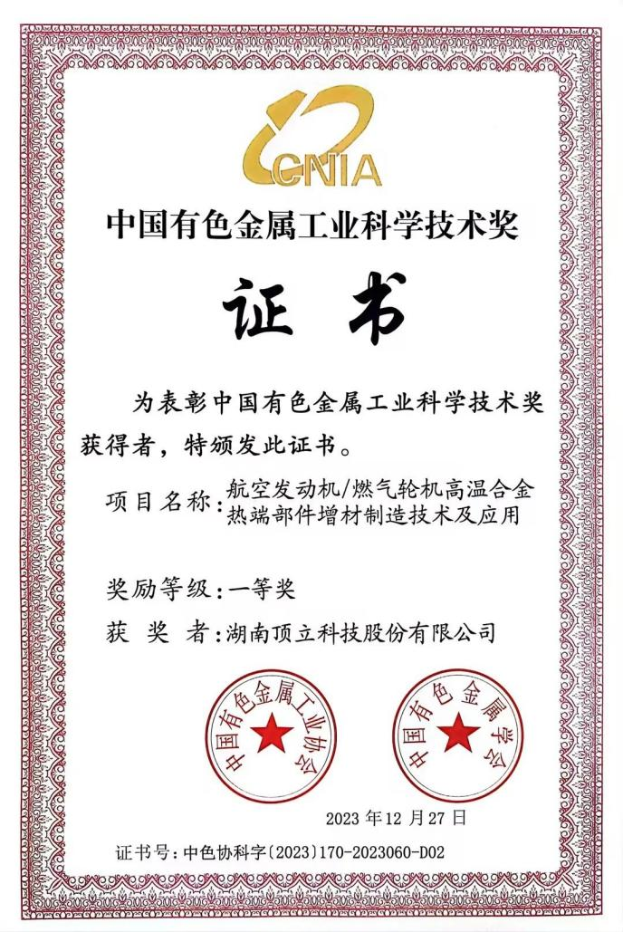 頂立科技獲中國(guó)有色金屬工業(yè)科學(xué)技術(shù)一...