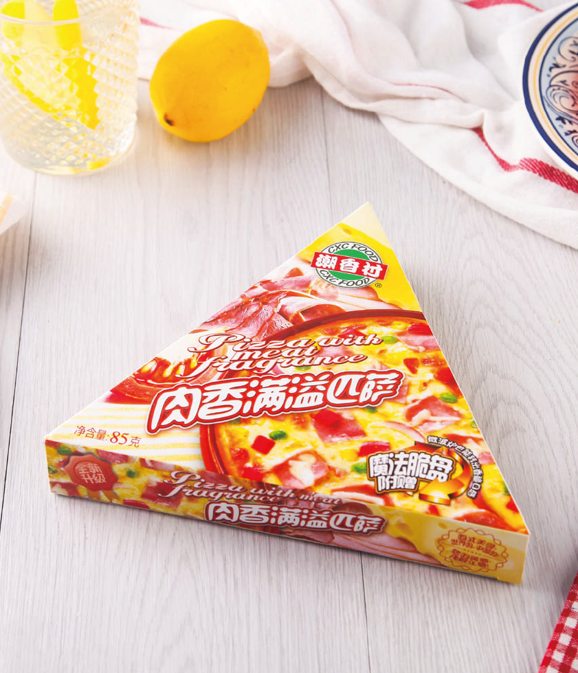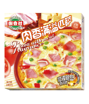 產(chǎn)品介紹:肉香滿溢匹薩——肉食主義者的心頭好!火腿、午餐肉,搭配青豆、洋蔥、紅椒、玉米,佐以酸甜可口的番茄醬,和奶香濃郁的芝士,無肉不歡,十足享受。