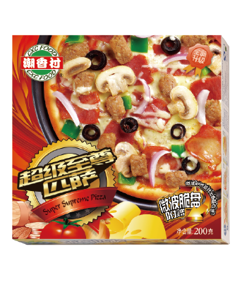 產(chǎn)品介紹:超級至尊匹薩——匹薩最有人氣的經(jīng)典口味!牛肉腸、五香肉、培根,搭配蘑菇、洋蔥、青椒等,如此豐盛的餡料,佐以正宗的披薩醬、奶味濃郁的優(yōu)質(zhì)進口芝士,口口都是令人滿足的好滋。